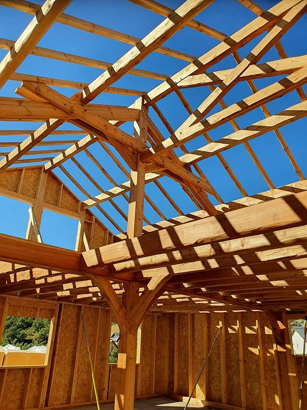 Nous travaillons principalement la charpente en bois, matériau noble et durable, qui offre résistance et charme naturel à vos toitures.